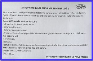 OTO CENTER BİLGİLENDİRME SEMİNERİ (1) “MESLEK HUKUKU” KONUSU İLE İCRA EDİLDİ